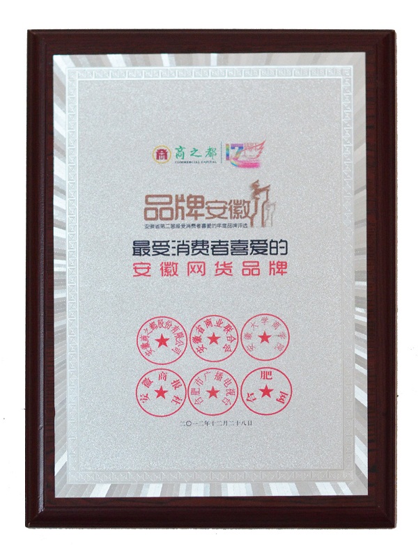 12月28日,在安徽省商務(wù)廳指導(dǎo)、相關(guān)單位主辦的第二屆“品牌安徽”2012安徽省最受消費(fèi)者喜愛的年度品牌評(píng)選活動(dòng)中,首度評(píng)出安徽十大網(wǎng)貨品牌。