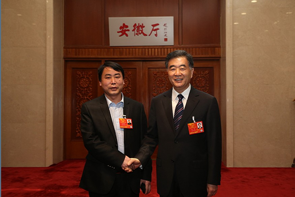 5、安徽省委書記張寶順與安徽天方集團(tuán)董事長鄭孝和在兩會上的合影