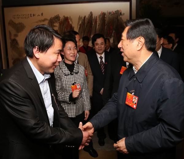 3、全國人大常委會副委員長張平在兩會上與鄭孝和董事長交流