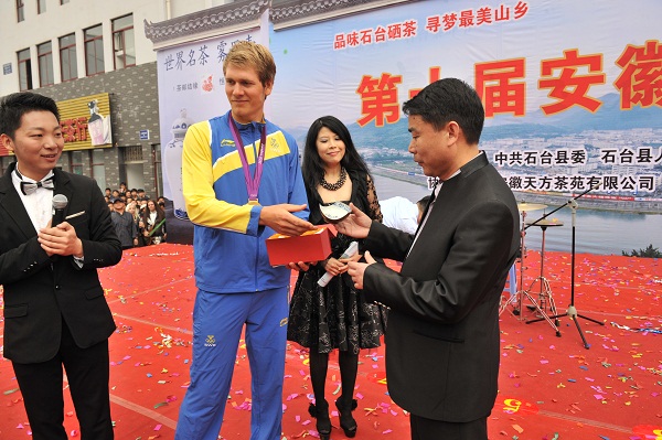 拍攝期間恰逢石臺縣第十屆茶葉節(jié)舉辦,瑞典GLAM樂隊(duì)?wèi)?yīng)邀參加了茶葉節(jié)的演出,奧運(yùn)冠軍馬克思-薩米能在茶葉節(jié)上將一塊從哥德堡號沉船上打撈上來的青花瓷片贈送給安徽天方茶業(yè)集團(tuán)鄭孝和董事長,給茶葉節(jié)增添了一大亮點(diǎn)。