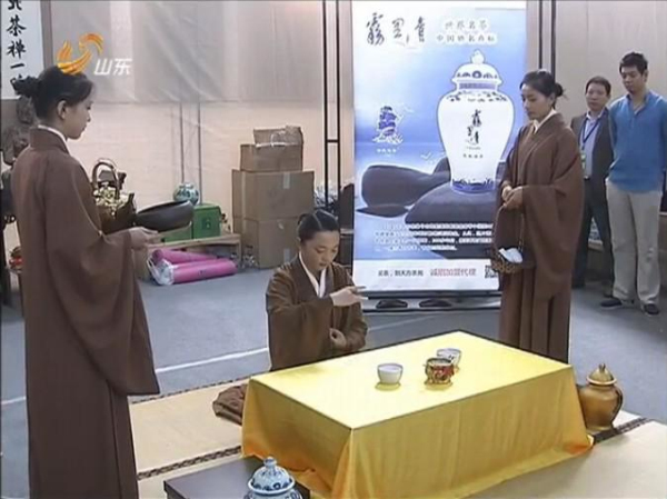 (23日晚,山東電視臺新聞聯(lián)播里天方禪茶茶藝表演的鏡頭)