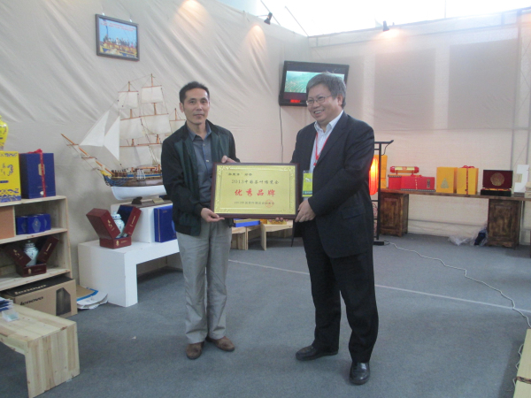 (國家農(nóng)業(yè)部優(yōu)質(zhì)農(nóng)產(chǎn)品開發(fā)服務(wù)中心主任陳金發(fā)為“霧里青”獲本屆茶博會“優(yōu)秀品牌”頒獎)