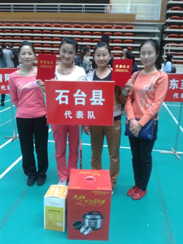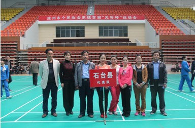(石臺(tái)縣代表隊(duì)在體育館內(nèi)合影)