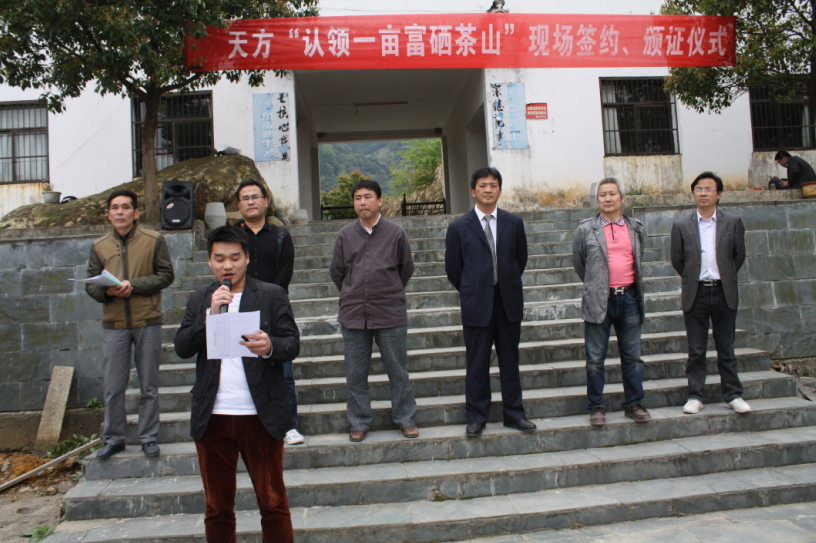 正值清明假期,大山富硒村里春意盎然,早茶飄香。安徽天方茶苑有限公司作為“認(rèn)領(lǐng)一畝富硒茶山”活動(dòng)的發(fā)起者,在石臺(tái)縣委縣政府以及縣農(nóng)委的大力支持下,在公司的茶園基地舉辦了此次簽約活動(dòng)。天方茶業(yè)董事長(zhǎng)鄭孝和為此次簽約活動(dòng)致歡迎辭,他在接受媒體采訪時(shí)表示:開(kāi)啟“認(rèn)領(lǐng)一畝富硒茶山”簽約活動(dòng)是天方有感于現(xiàn)在的“食品安全”問(wèn)題越來(lái)越多,特邀大家與企業(yè)一起互動(dòng),參與監(jiān)督企業(yè)的生產(chǎn)制作過(guò)程,加強(qiáng)企業(yè)自我約束;同時(shí),在堅(jiān)持有機(jī)方式的管理下,帶動(dòng)更多的茶農(nóng)增收致富。