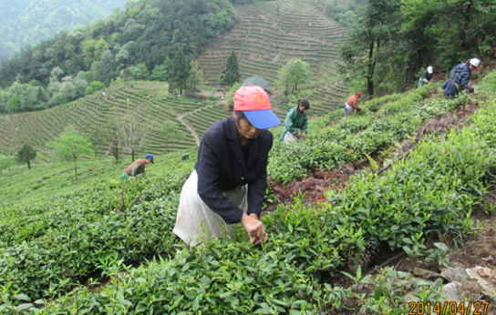 在山上,正好遇到公司請(qǐng)的采茶工在采茶,也給他們來張照片,感謝他們的辛勤付出,為我們采來一杯杯好茶!