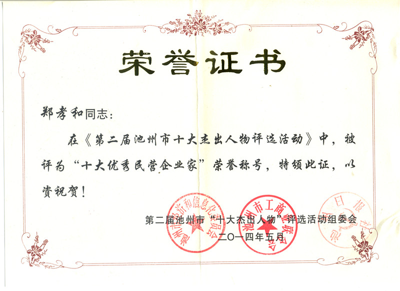 5月30號(hào),池州市第二屆十大杰出經(jīng)濟(jì)人物頒獎(jiǎng)典禮在召開(kāi)。本次評(píng)選活動(dòng)是由池州市經(jīng)信委、池州市工商聯(lián)、池州日?qǐng)?bào)社共同主辦,候選人經(jīng)過(guò)主管部門推薦,采取社會(huì)公眾投票與評(píng)審委員會(huì)投票相結(jié)合的方式最后選定獲獎(jiǎng)?wù)?。旨在表彰一批在改革開(kāi)放和現(xiàn)代化建設(shè)中做出突出貢獻(xiàn)、取得突出業(yè)績(jī)、體現(xiàn)時(shí)代精神風(fēng)貌的優(yōu)秀人物。