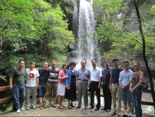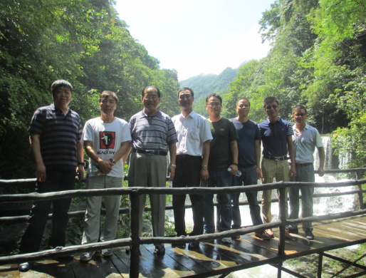(商會領導一行與天方工作人員在大山富硒村的一簾幽夢景點前合影)