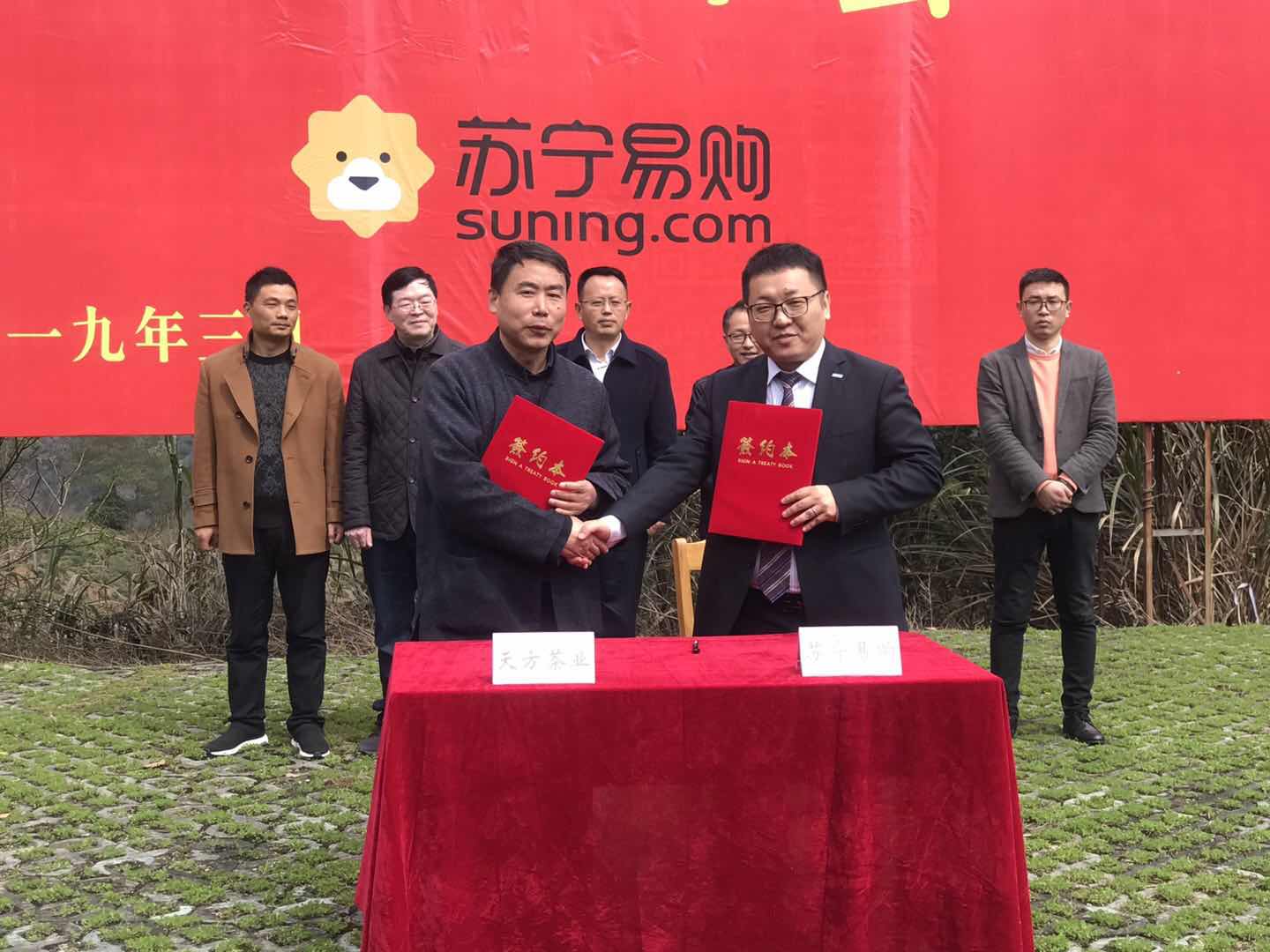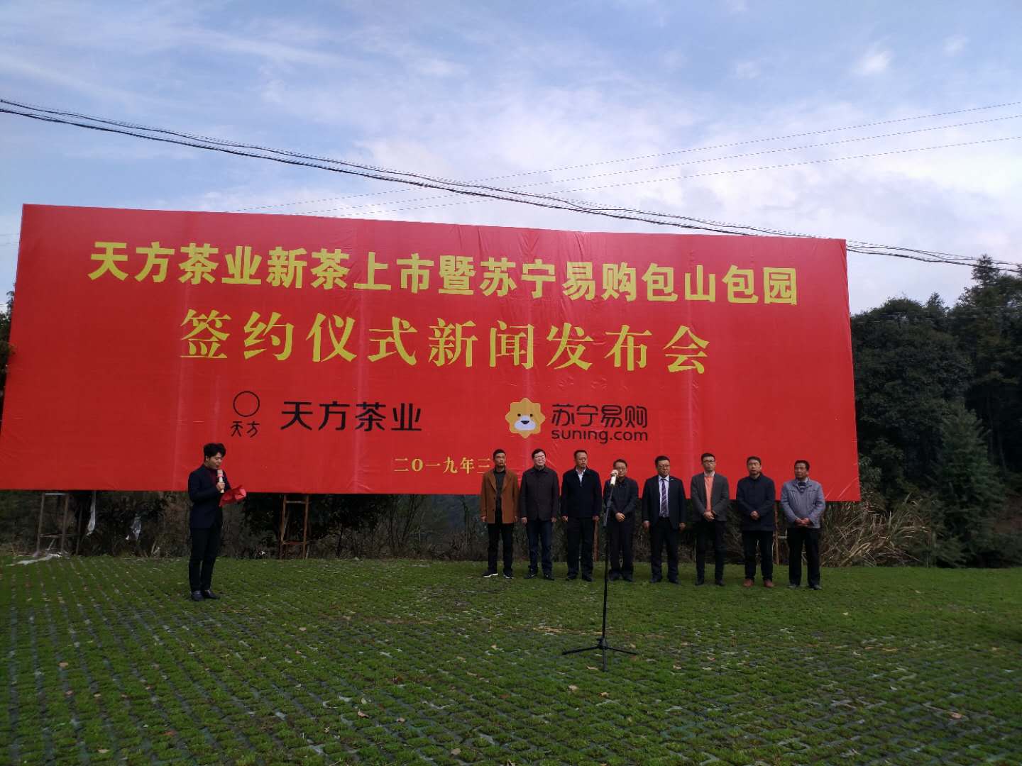 陽春三月,春茶飄香。3月23日,由天方茶業(yè)股份有限公司與蘇寧易購共同主辦天方茶業(yè)新茶上市暨蘇寧易購包山包園簽約儀式在石臺縣大山富硒村隆重舉行。與會領(lǐng)導(dǎo)、嘉賓、企業(yè)家和媒體齊聚一堂,共同見證天方茶業(yè)今年第一批新茶上市,分享天方茶業(yè)與蘇寧易購圓滿簽約、助推扶貧發(fā)展喜悅。