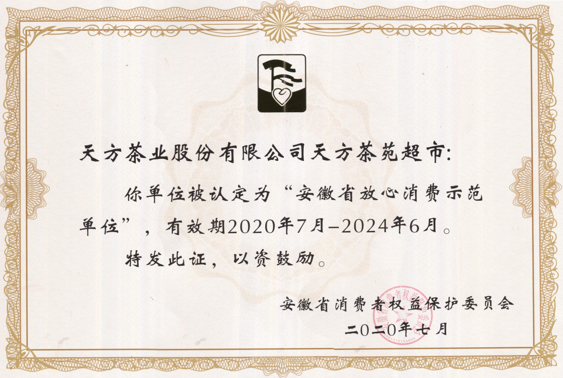 據(jù)悉,天方茶苑超市是天方茶業(yè)股份有限公司旗下從事以天方茶產(chǎn)品銷售為主的旅游團隊接待、茶館服務等相關(guān)業(yè)務的連鎖超市。超市2018年獲評池州市放心消費示范單位;2020年獲評安徽省放心消費示范單位,是池州市首家省級放心消費示范單位。