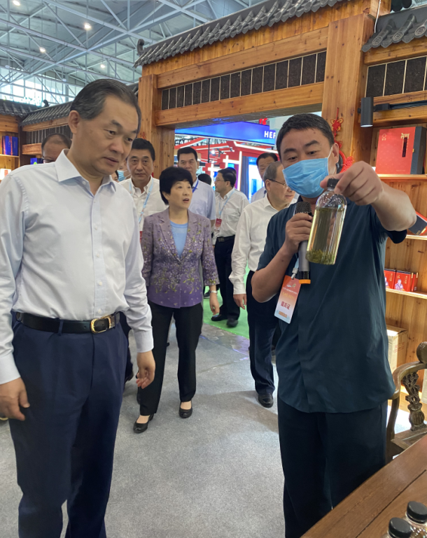 安徽省人民政府副省長張曙光、中國茶業(yè)流通協(xié)會會長王慶等多位領導視察天方展位,了解和體驗天方冷泡水。