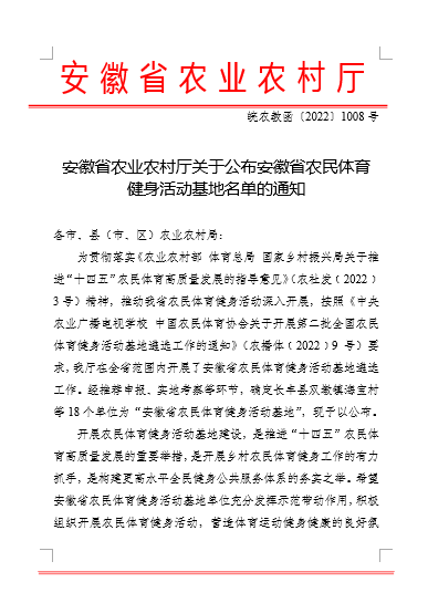 天方獲選“安徽省農(nóng)民體育健身活動基地”