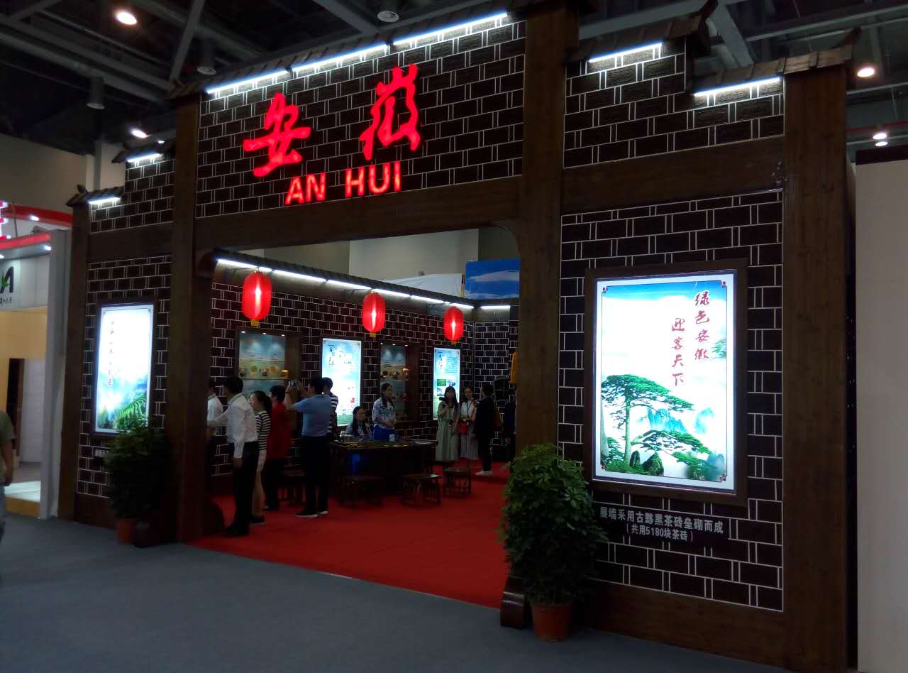 安徽展館以5180塊古黟黑茶磚壘砌而成,徽派建筑與徽茶文化相交融,為大會(huì)帶來濃郁的“安徽味道”