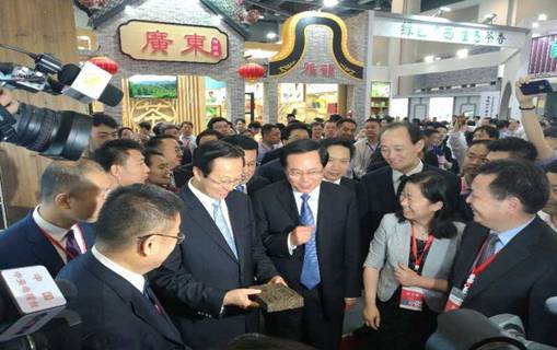 杭州首屆中國茶葉博覽會(huì)上,農(nóng)業(yè)部部長韓長賦,浙江省委書記車俊同時(shí)向外賓推介天方黑茶磚