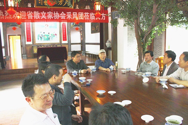 下午5點半左右采風(fēng)團一行到達石臺,當(dāng)晚入住石臺賓館,晚飯后,采風(fēng)團在天方茶業(yè)集團辦公室主任王焱等的陪同下,觀看了天方精彩而富有深度、內(nèi)涵的茶藝表演,大家一致叫好。28日上午,在天方茶藝館舉行了此次筆會的啟動儀式,雙方與會人員全部參加,會議由石臺縣作協(xié)秘書長、石臺縣糧食局副局長李求實主持,安徽天方茶業(yè)集團黨支部書記、工會主席谷永康致歡迎詞。省散協(xié)第一副主席、省作協(xié)副主席、中國作協(xié)會員高正文代表省散協(xié)發(fā)言,他說,對于石臺這個最美生態(tài)山鄉(xiāng),他早有耳聞,他覺得自古文人離不開酒、離不開茶、離不開情,這些感觸在走進秋浦書院的那一刻升華,秋浦書院將老子、莊子等傳統(tǒng)文化與茶聯(lián)系在一起,對提升現(xiàn)代人的文化素養(yǎng)有極大意義,天方集團和省散協(xié)共同舉行的這次采風(fēng)活動,也是對作家們靜性、情趣、靈感的培養(yǎng)啟發(fā),對散文事業(yè)的發(fā)展是有幫助的,希望這次活動成功,作家們能出好作品。